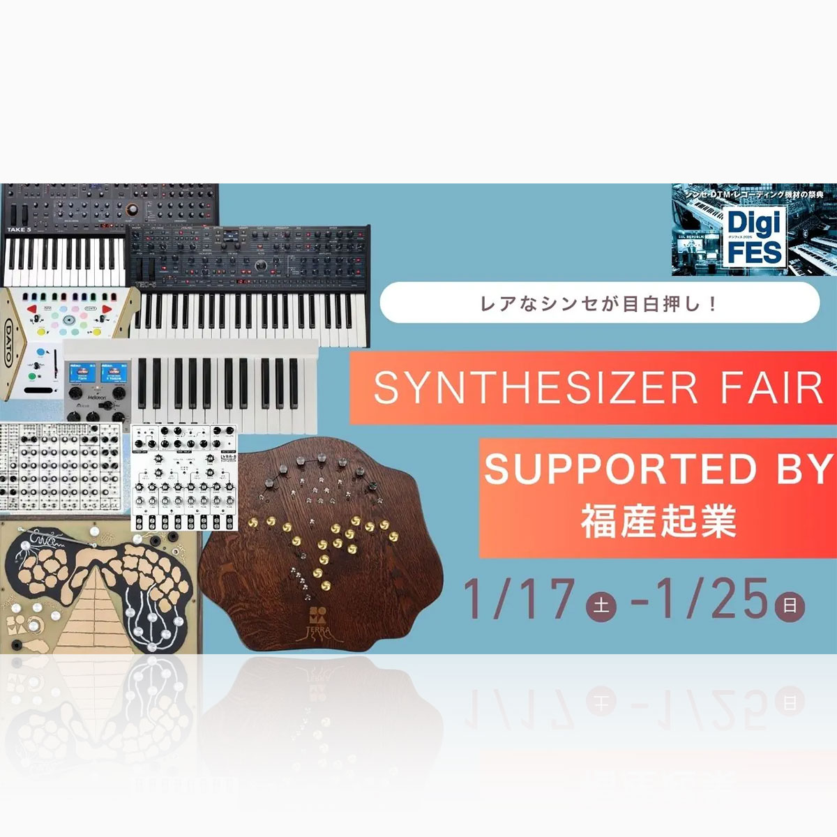 1月17日(土)〜 1月25日(日)に島村楽器 仙台ロフト店で開催される「デジフェス2025」にて、福産起業取り扱い製品が多数展示されます。