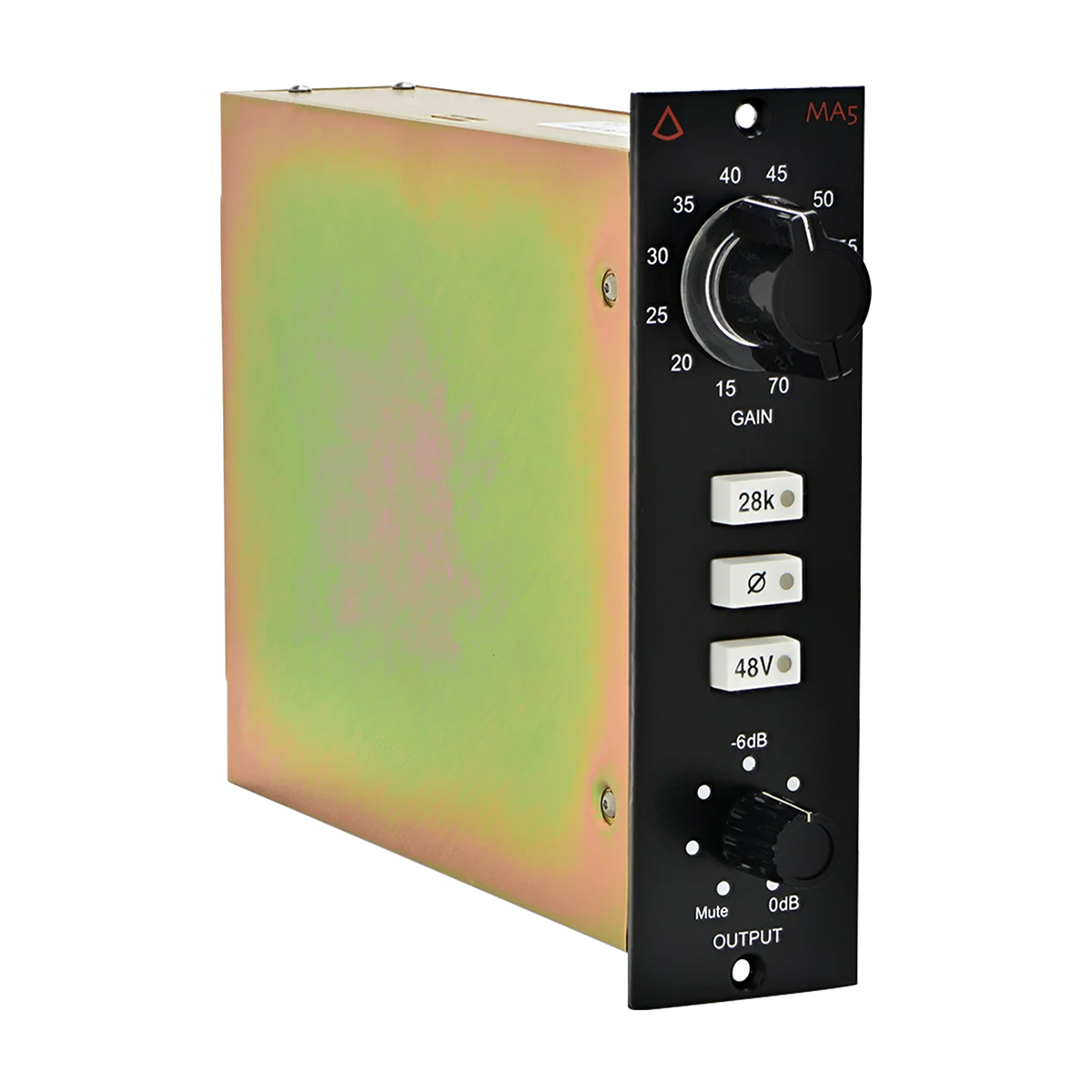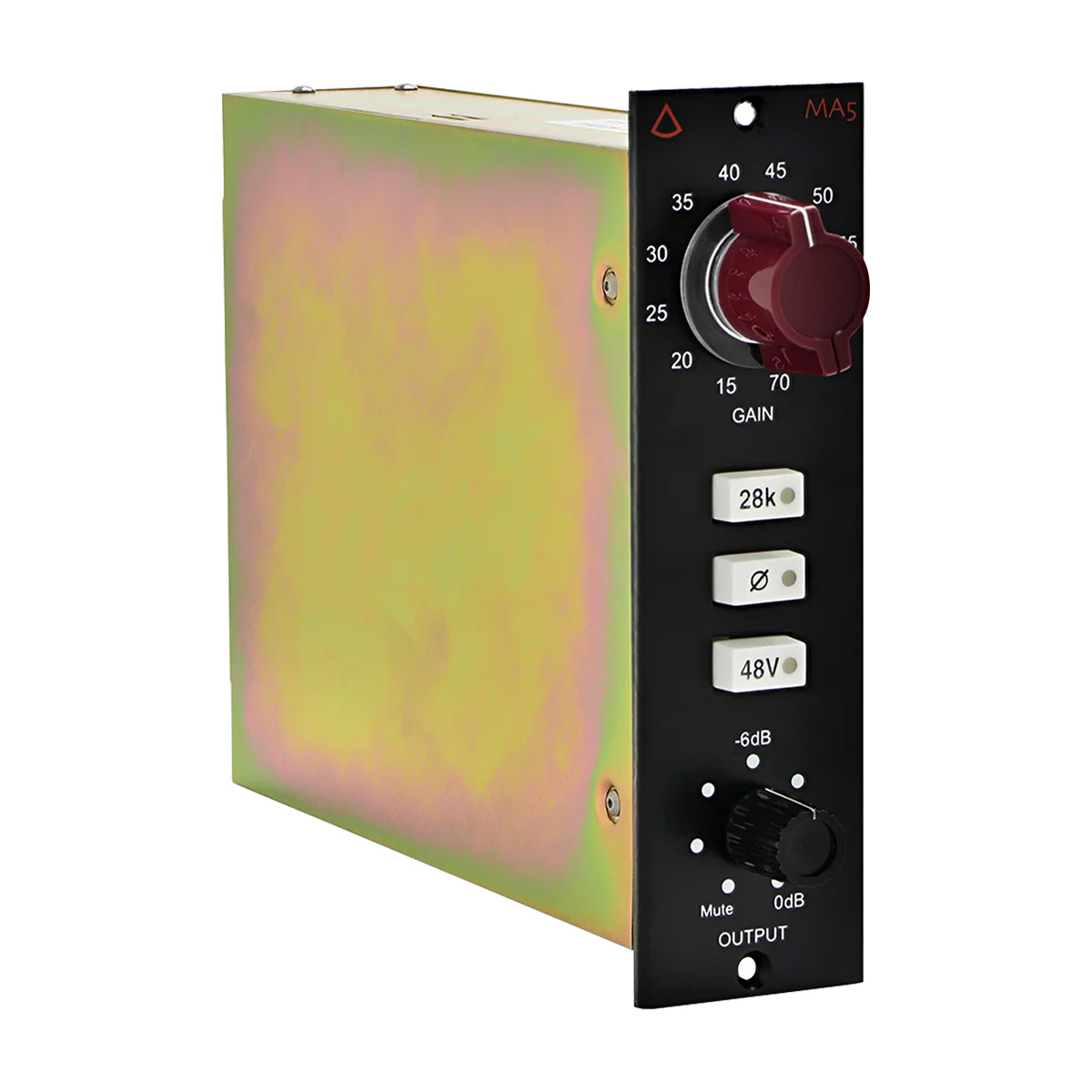MA5 は 1970 年初期の Neve コンソールのサウンドを目標に開発したマイクプリアンプだ。私は長い間ハリウッドの Brent Averll 社でチーフエンジニアとして数多くのアメリカ製、イギリス製のビンテージ・コンソールのメンテナンスとラック改造を手掛けてきた。それらのコンソールにはトランスを使ったバランス回路をはじめ、HiFi サウンドの再生のために考え抜かれた多くのディスクリート回路が採用されている。私は MA5 の開発にあたり、これらの優れたコンソールから学んだ様々な技術を再構築し、コストを度外視したパーツの選別などで試行錯誤を繰り返した。実際、MA5 の完成には 1 年以上の時間を費やしたが、それはエンジニアとして回路設計やパーツの選別はもちろん、ミュージシャンとしての視点からゲイン設定などの操作性や機能、そしてより良いサウンドを得るために時間を掛けて試聴を繰り返したためだ。高性能な計測器の測定値は確かに役だったが、耳での試聴と経験に基づく判断が最も大切なことだよ。結局のところ私の機材開発の最終的な目的は私達の「耳」を満足させることだからね。MA5 のワイドレンジで開放的なサウンド、特に 10Hz まで再生する低音のすばらしさは豊かなハーモニックスによるもので、中域はクリアー、高域はスムーズでエッジがぼやけたりサウンドが濁ったりすることはない。