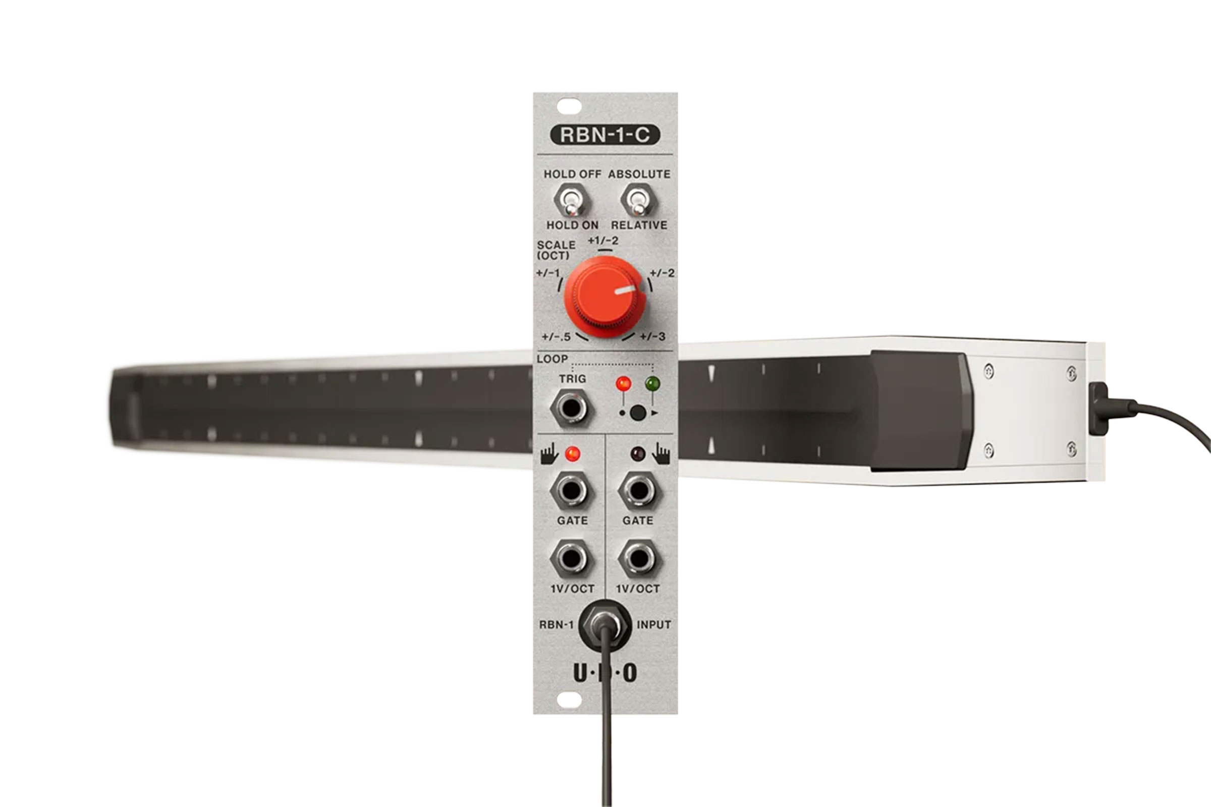 RBN-1-C は、パフォーマンス・リボン・コントローラー RBN-1 のために設計された、強力なユーロラック・インターフェースです。表現力豊かな演奏を可能にする RBN-1 をあらゆるモジュラー・システムに接続し、トリガー入力を備えたライブ・ルーパー、リボン動作モードの設定、2点タッチ操作に対応した CV/Gate 出力など、多彩で柔軟なパフォーマンス機能を活用できます。