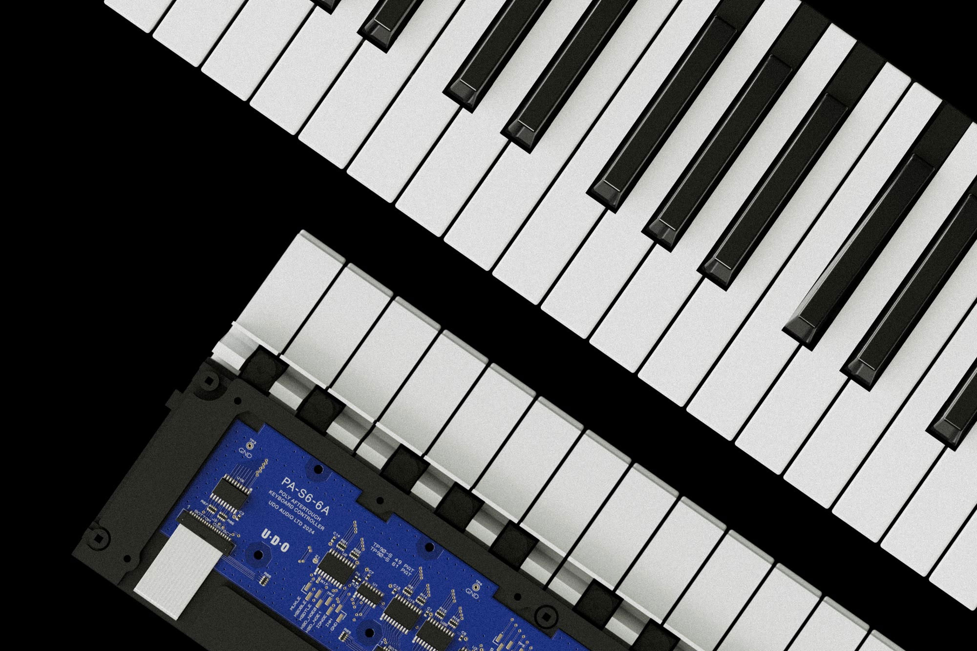 SuperTouch 49 は、単なるポリフォニック・アフタータッチの追加にとどまりません。タッチ感と鍵盤の重量感を改良した、完全なキーベッド交換ユニットです。UDO 独自のテクノロジーを採用することで、Super 6 のオーディオ・アーキテクチャに最適化されたシームレスな統合と、これまでにない演奏性を実現しています。